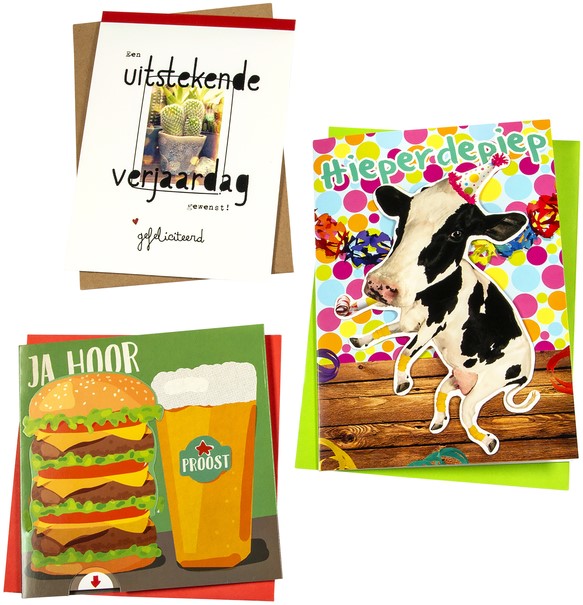 Wenskaart Paperclip verjaardag man navulset à 6 stuks