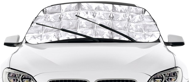 In de zomerperiode ook te gebruiken als zonnescherm: weerkaatst de zonnenstralen waardoor de temperatuur in de auto minder snel oploopt.