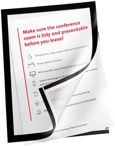 Met het zelfklevende Infokader van Quantore A3 presenteer je documenten, posters of informatiebladen altijd netjes en professioneel. De zwarte rand zorgt voor een strakke, moderne uitstraling en het magnetische zichtframe is zowel staand als liggend te gebruiken. Dankzij de zelfklevende achterzijde hecht het stevig op alle vlakke oppervlakken en is het eenvoudig herpositioneerbaar zonder lijmresten achter te laten. Ideaal voor kantoren, winkels, scholen en openbare ruimtes waar informatie regelmatig wisselt. Verpakt per 2 stuks, zodat je direct meerdere plekken van duidelijke communicatie kunt voorzien. kenmerken:
