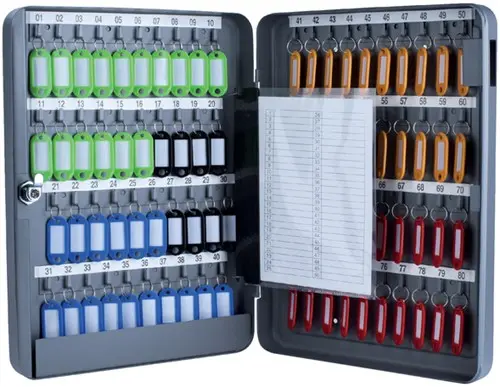 Inclusief: sleutelhangers, genummerde haken, bevestigingsmateriaal, 2 sleutels.