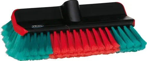 De borstel kan gekoppeld worden aan de telescopische stelen met watertoevoer uit het Vikan assortiment.