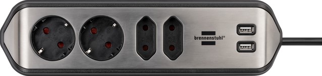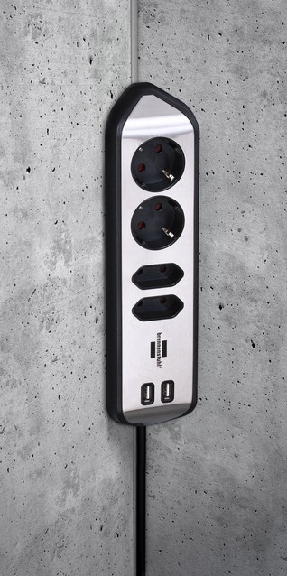 De compacte brennenstuhl®estilo, met randaarde, hoekstopcontact van zeer breukvast kunststof en hoogwaardig roestvrij stalen oppervlak brengt orde in uw huis.