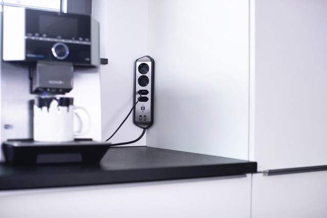 De universeel bruikbare contactdoosstrook kan eenvoudig worden bevestigd als stekkerdoos voor uw werkblad of als tafelcontactdoosstrook voor uw werkplek met behulp van speciale zelfklevende pads.