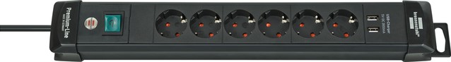 De Premium-Line 6 voudig Stekkerdoos met randaarde van Brennenstuhl in de kleur zwart, met 2 USB-laadcontactdozen en 3m kabel, overtuigt door zijn kwaliteit en veiligheid op alle vlakken. De vormvaste en stabiele behuizing bestaat uit zeer breukvast speciaal kunststof. Het heeft niet alleen een hogere contactbescherming, maar overtuigt ook met de volgende kenmerken: