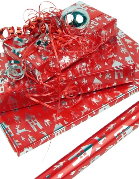 Inpakpapier met een metallic afwerking in kerstsfeer.