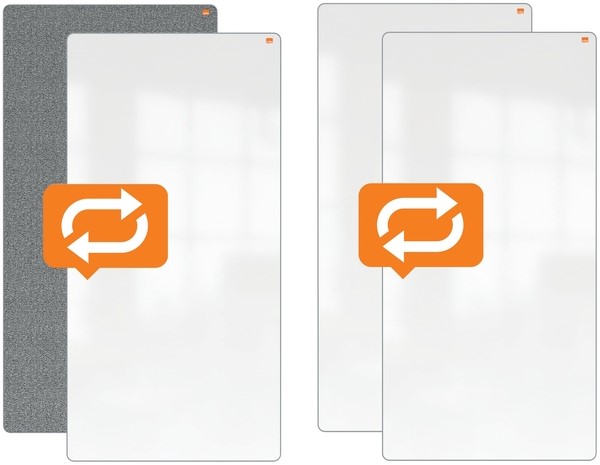 Biedt flexibiliteit en samenwerking, met plaats voor een combinatie van 4 verwijderbare, dubbelzijdige whiteboards en memoborden.