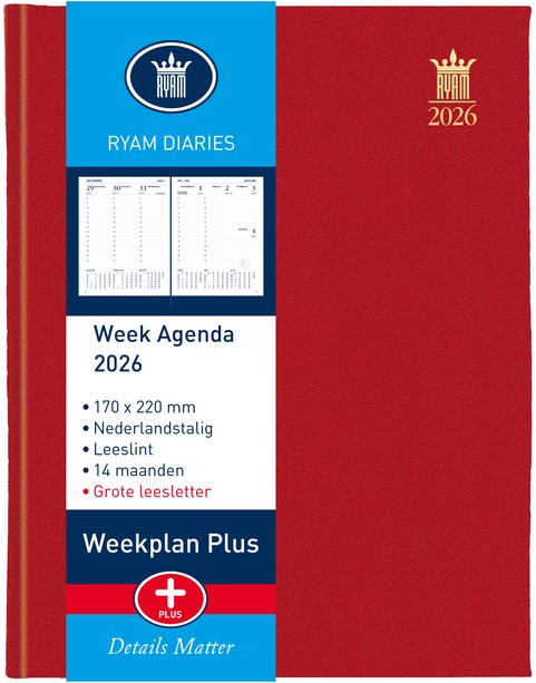 Agenda 2026 Ryam Weekplan Plus Mundior groot letter 7dagen/2pagina's assorti