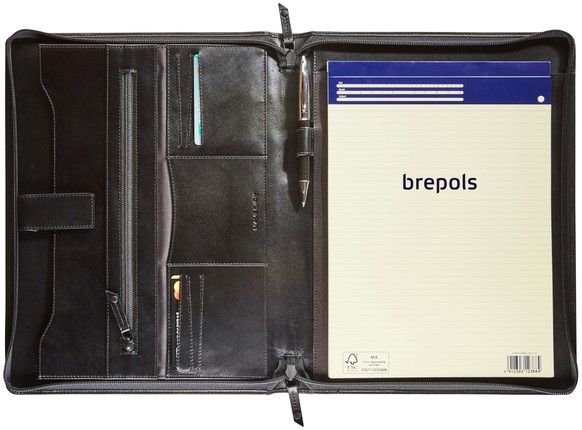 Schrijfmap van der Spek A4 + rits leer zwart