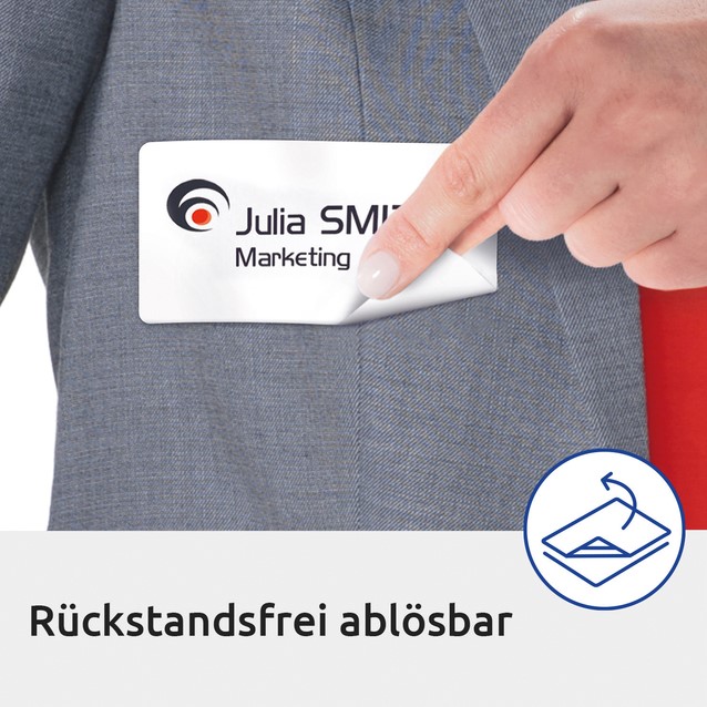 Met deze naambadge-etiketten heeft u geen badgehouder, spelden of andere bevestigingssystemen nodig.