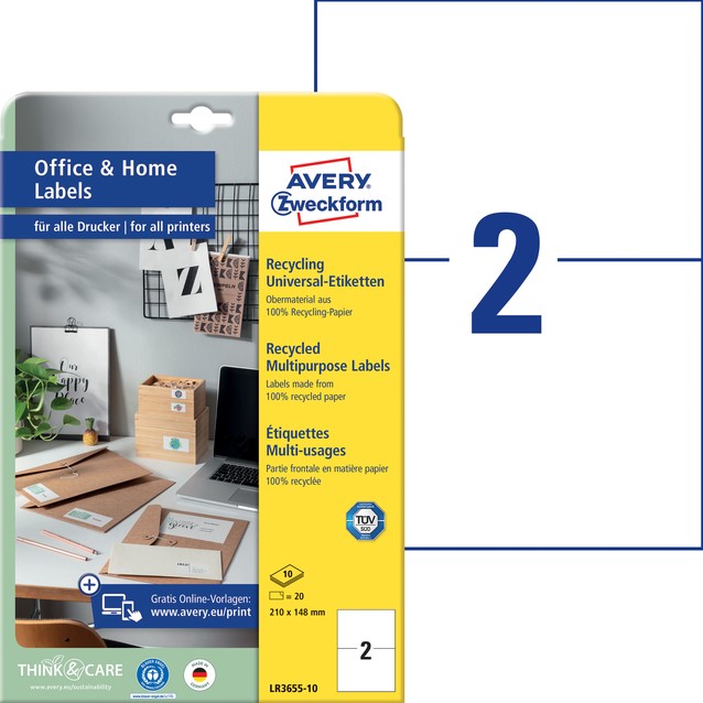 Etiket Avery LR3655-10 210x148mm recycled wit 20 stuks
