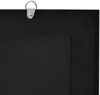 Stevig afgewerkt, afgerond en in verstek gezaagd houten frame, voorzien van een 3mm dik melamine gecoat zwart bord.