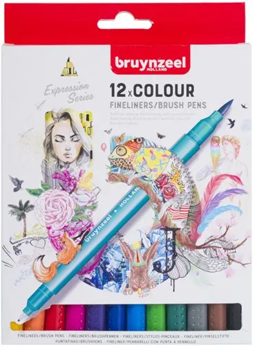 Duotip Bruynzeel Expression fineliner en brushpen set à 12 kleuren