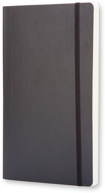 Kenmerken: afgeronde hoeken, elastische sluiting, ivoorkleurig Moleskine-papier, bijpassend leeslint, papier: 70 gsm, zuurvrij, “In geval van verlies”-label op het schutblad, uitbreidbaar binnenvak op achterkaft.