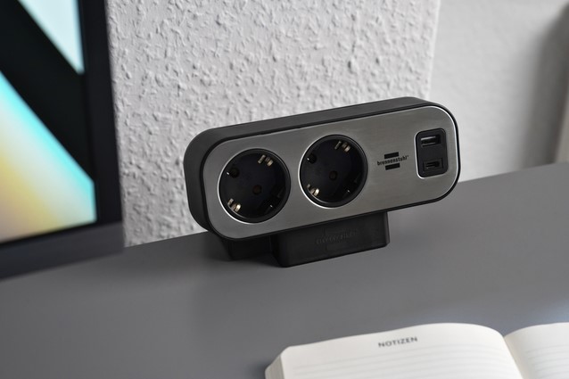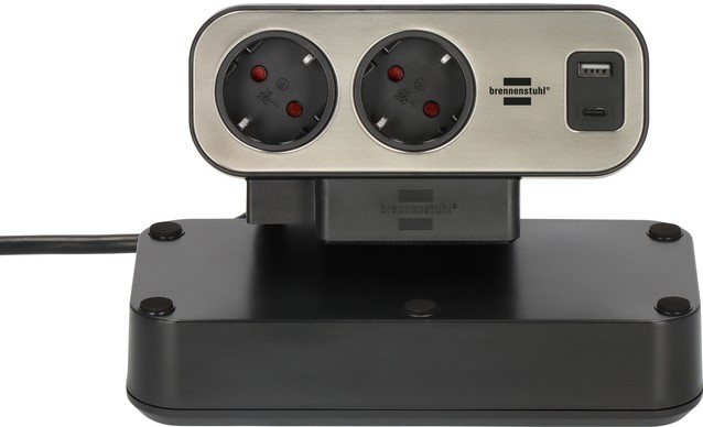 De tweedelige brennenstuhl®estilo stekkerdoos met randaarde, met tweepolige schakelaar en hoogwaardig roestvrij stalen oppervlak brengt orde rondom de werkplek.