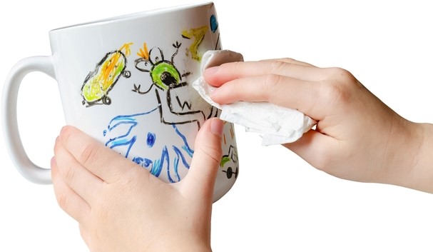 Als het tijd is om schoon te maken, veeg of verwijder je de markeringen of tekeningen op niet-poreuze oppervlakken af met een vochtige doek.