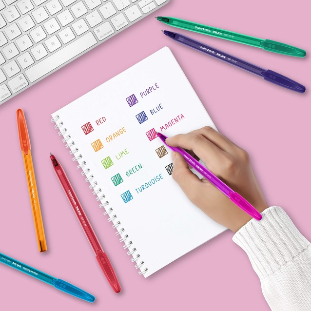Fleur elke pagina op en maak schrijven leuker met Paper Mate InkJoy-balpennen.