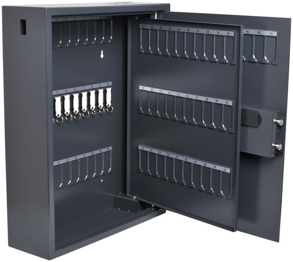 Deze hoogwaardige sleutelkast voor 100 sleutels combineert het hoogste beveiligingsniveau met een uitstekende sleutelorganisatie.