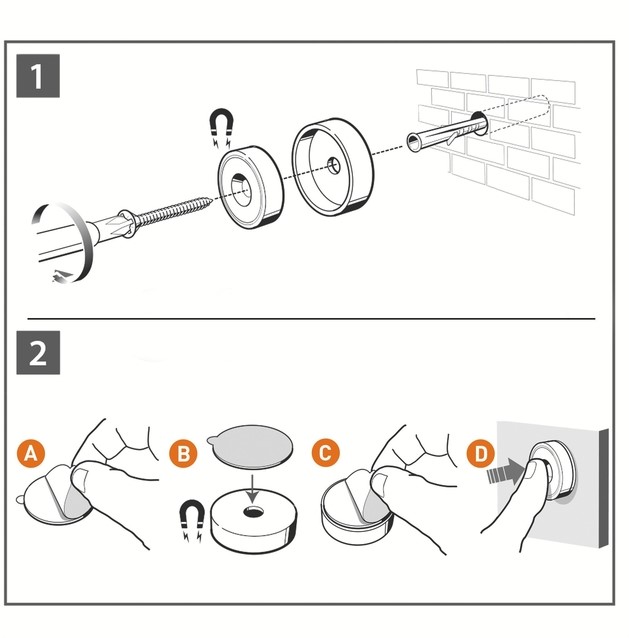 De magneten, waaraan je het bord komt te hangen, kunnen aan de muur worden bevestigd met schroeven of zelfklevende pads op vlakke oppervlakken.