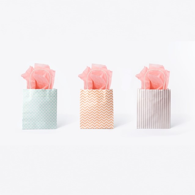 Deze set van drie witte tassen met dessinis de perfecte toevoeging aan elke gelegenheid. Elke tas is gemaakt van stevig 115 grams kraftpapier en heeft een afmeting van 18x21x8 cm, idelaal voor kleine geschenken.