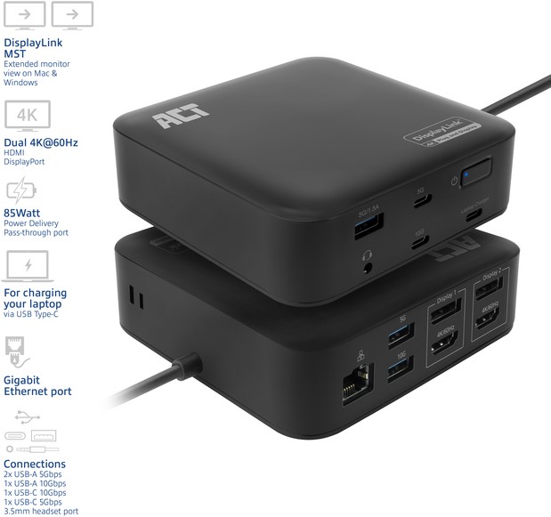 DisplayLink®-technologie: het bureaublad van macOS en Windows computers Het AC7150 dockingstation heeft een geïntegreerde DisplayLink®-chip.