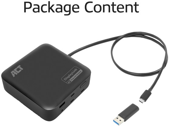 Het AC7150 USB-C Docking Station voldoet aan alle voorwaarden van het DisplayLink Certified Logo Program. De AC7150 is een compact dockingstation met een vaste USB-C-kabel van 1 meter, geschikt voor een vaste werkplek en om mee te nemen.