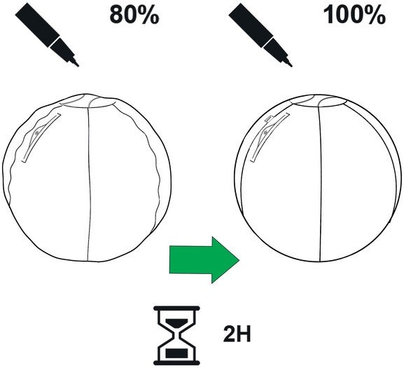 Eenvoudig op te zetten: binnenbal opblazen met de meegeleverde pomp. (bal opblazen tot 80%, 2 uur wachten, dan opblazen tot 100% zodat de hoes bijna kreukvrij is)