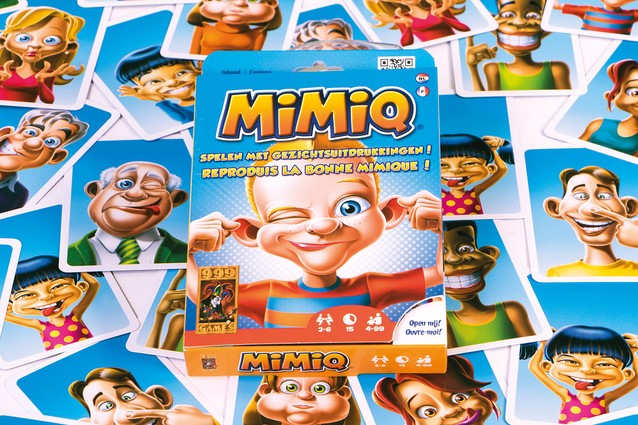 Kwartetten met gezichtsuitdrukkingen. Spaar setjes van 3 kaarten door gezichten te imiteren. Heb je een gevraagde kaart niet, steek dan je tong naar de ander uit. Educatief en ontzettend leuk! Grappig en leerzaam spel voor kinderen en hun ouders. Vraag kaarten aan elkaar door gekke gezichten te trekken. Heeft iemand een gevraagde kaart niet, dan steekt hij zijn tong uit. Wie de meeste setjes heeft verzameld, wint dit knotsgekke spel. In dit hilarische spel leren kinderen op een speelse manier gezichtsuitdrukkingen te maken, te benoemen en te gebruiken. Door de beperkte speelduur is Mimiq al voor heel jonge kinderen geschikt! Specificaties; Aantal spelers tussen 2-6 spelers Geschikt vanaf 4 jaar Gemiddelde speeltijd: 15 minuten Taal: Nederlands
