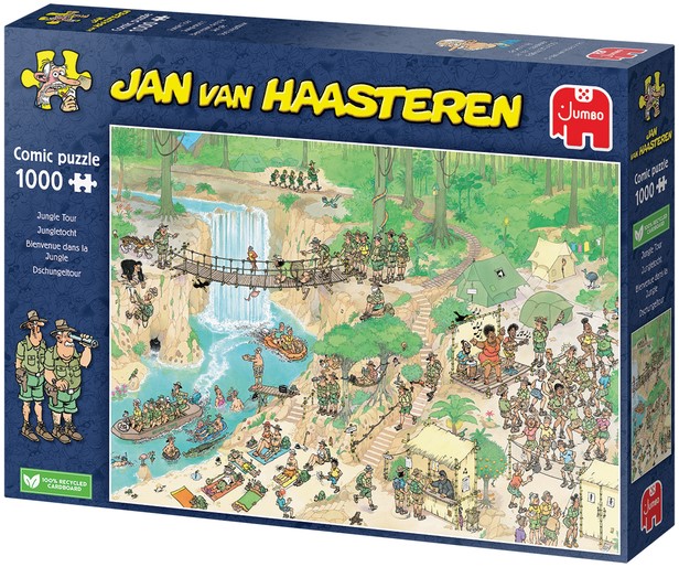 Jan van Haasteren puzzels zijn puzzels met veel kleur en details. Jan van Haasteren tekent al decennia lang humoristische platen die je steeds weer verrassen en laten lachen. De echte fans kennen de specifieke kenmerken van Jan van Haasteren en zoeken in elke puzzel direct naar de haaienvin, Sinterklaas, de handjes, het kunstgebit en Jan’s zelfportret. Alle puzzels zijn gemaakt van 100% gerecycled karton en duurzaam geproduceerd papier.