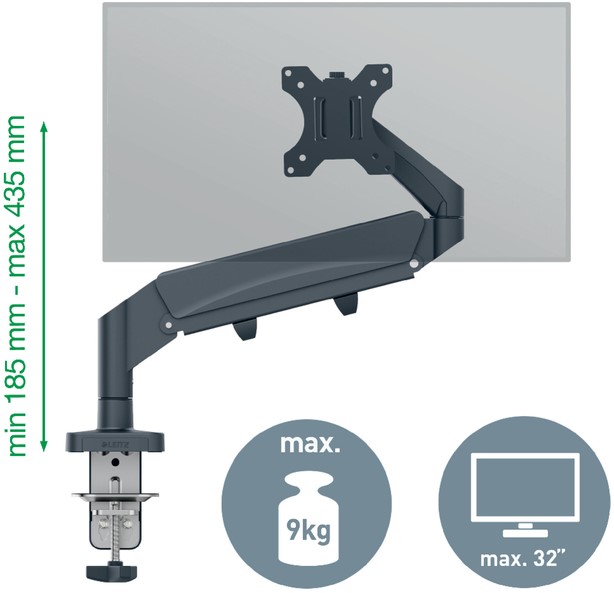 Monitorarm Leitz Ergo ruimtebesparend enkel donkergrijs