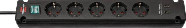 Stekkerdoos Brennenstuhl Bremounta 5vdig incl 2 USB 3m zwart