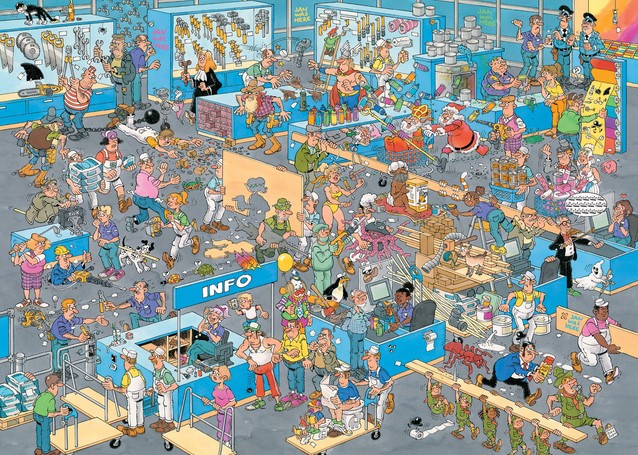 De familie Jan van Haasteren gaat naar de Bouwmarkt en gaat hun villa verbouwen. Doldwaze avonturen in 2 puzzels van 1000 stukjes.