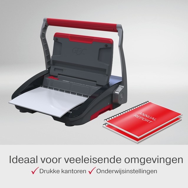 Bindt maximaal 125 vellen (80 grams) tegelijk met een inbindrug van 14mm.