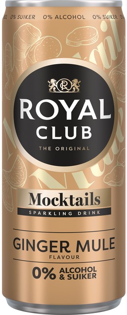 Mocktails Royal Club ginger mule 0% suiker en alcohol blik 250 ml