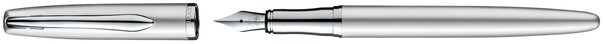 De gepolijste, roestvrijstalen penpunt is in M (medium) breedte.