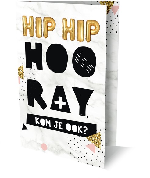 Iets te vieren? Nodig al je vrienden uit met deze vrolijke Hip Hip Hooray uitnodigingskaart. Set van 6 kaarten, inclusief enveloppen.