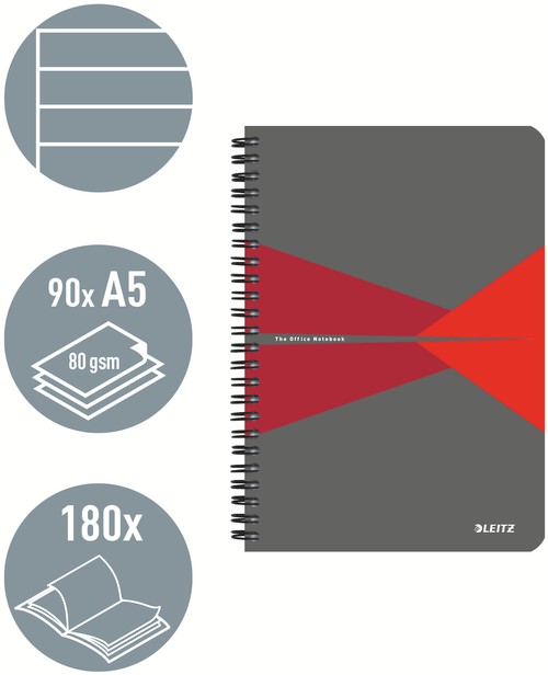 Notitieboek Leitz Office A5 lijn 180 pagina's 80gr grijs rood