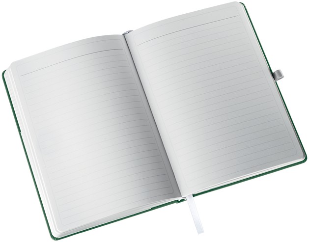 Klassiek notitieboek van hoge kwaliteit met harde kaft in moderne, zacht geborstelde afwerking en elegante kleur. Pennenhouder, elastieksluiting en een vak aan de binnenkant van de achterkaft maken de notitieboekjes nog functioneler. Aantrekkelijke zilverkleurige elastische band houdt de pagina's stevig vast Pennenhouder houdt een pen of potlood altijd bij de hand Textiele bladwijzer helpt bij het snel vinden en openen van een belangrijke pagina Laatste 8 pagina's zijn geperforeerd in kleinere kaarten voor het eenvoudig delen van contactgegevens of korte notities Geïntegreerd vak aan de binnenkant van de achteromslag voor het snel opbergen van losse papieren of visitekaartjes 160 pagina's / 80 vellen hoogwaardig, FSC®-gecertificeerd ivoorkleurig papier van 100 g/m Volledig product is FSC Mix gecertificeerd