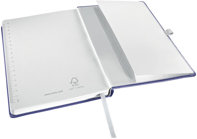 Klassiek notitieboek van hoge kwaliteit met harde kaft in moderne, zacht geborstelde afwerking en elegante kleur. Pennenhouder, elastieksluiting en een vak aan de binnenkant van de achterkaft maken de notitieboekjes nog functioneler. Aantrekkelijke zilverkleurige elastische band houdt de pagina's stevig vast Pennenhouder houdt een pen of potlood altijd bij de hand Textiele bladwijzer helpt bij het snel vinden en openen van een belangrijke pagina Laatste 8 pagina's zijn geperforeerd in kleinere kaarten voor het eenvoudig delen van contactgegevens of korte notities Geïntegreerd vak aan de binnenkant van de achteromslag voor het snel opbergen van losse papieren of visitekaartjes 160 pagina's / 80 vellen hoogwaardig, FSC®-gecertificeerd ivoorkleurig papier van 100 g/m Volledig product is FSC Mix gecertificeerd
