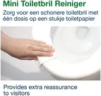 Tork Mini Toiletbril Reiniger is een schoonmaakproduct dat bezoekers geruststelt. Met één dosis Toiletbril Reiniger op een stuk toiletpapier wordt de toiletbril gegarandeerd schoner. Deze 'Easy-to-use'-gecertificeerde vulling is geschikt voor Tork Zeep en Handdesinfectie Dispensers. De voordelen op een rijtje: