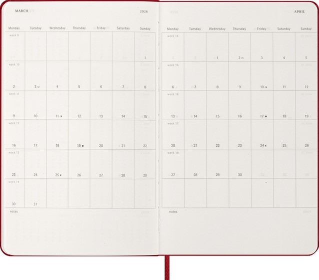 Agenda 2026 Moleskine 12M Planner Weekly 7dagen/1pagina large sc scarlet red