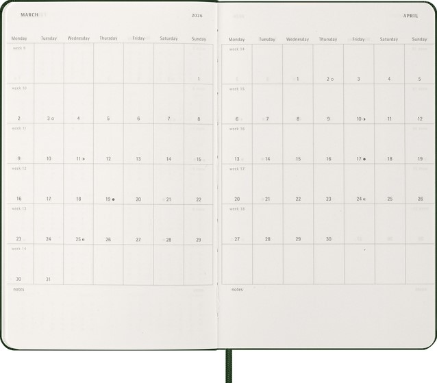 Agenda 2026 Moleskine 12M Planner Weekly 7dagen/1pagina large sc myrtle green
