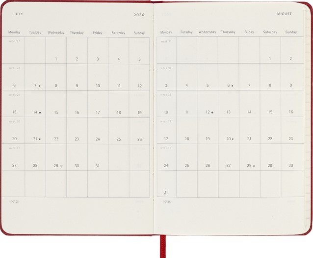 Agenda 2026 Moleskine 12M Planner Weekly 7dagen/1pagina pocket hc scarlet red