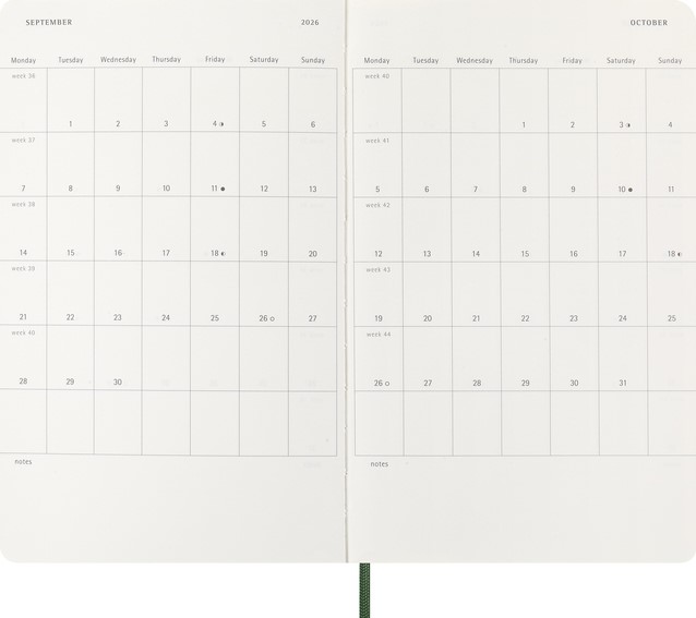 Agenda 2026 Moleskine 12M Planner Weekly 7dagen/1pagina large sc myrtle green