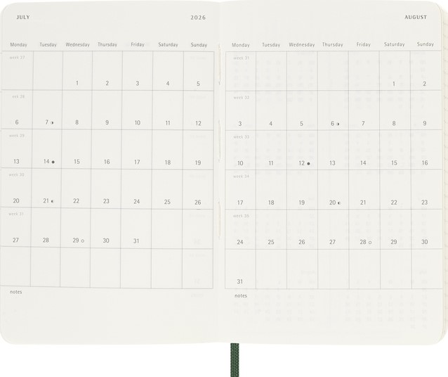 Agenda 2026 Moleskine 12M Planner Weekly 7dagen/1pagina pocket sc myrtle green