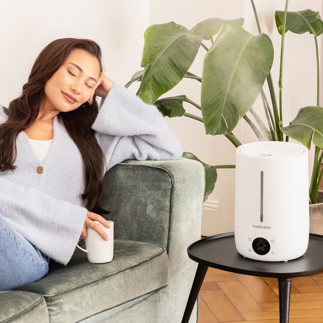 De lucht in de ruimte wordt efficiënt bevochtigd met ultrasone technologie, terwijl een geïntegreerde sensor constant de luchtkwaliteit controleert en aanpast aan de individuele behoeften. Het LED-display met aanraakbediening kan worden gebruikt om de luchtvochtigheid in te stellen tussen 45%-75% en de bevochtigingsintensiteit in drie fasen. Alle waarden kunnen eenvoudig worden afgelezen van de geïntegreerde hygrometer.