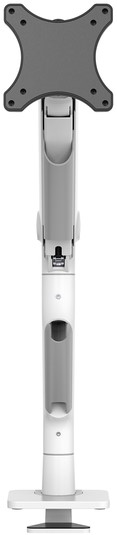De arm is voorzien van een premium coating, gasgeveerde hoogteverstelling (20-52 cm) en diepteverstelling (8,8-62,5 cm), VESA quickrelease, 180°-stopmechanisme, waardoor deze goed bij een akoestische wand gebruikt kan worden, standaard uitgerust met een platte topfixklem en bureaudoorvoer.