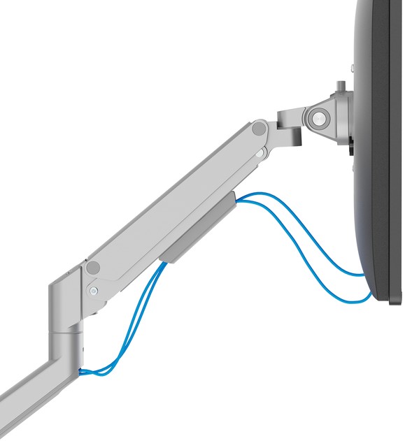 De Neomounts DS70-250SL2 NEXT Slim is een full motion monitorarm ontworpen voor twee schermen tot 32" met een maximaal draagvermogen van 9 kg per display. De veelzijdige kantel- (90°), roteer- (360°) en zwenktechnologie (180°) maakt naadloze aanpassing aan elke gewenste kijkhoek mogelijk om de functionaliteiten van het scherm volledig te optimaliseren. Dankzij de gasgeveerde hoogteverstelling (21,5-49,5 cm) en diepteverstelling (7-52,5 cm) kun je eenvoudig de bureausteun aanpassen aan jouw ergonomische behoeften. De DS70-250SL2 monitorarm is voorzien van een handig 180°-stopmechanisme dat voorkomt dat de steun muur of scheidingspaneel raakt, wanneer deze in de buurt ervan wordt geïnstalleerd, terwijl het geïntegreerde kabelmanagementsysteem zorgt voor een opgeruimd bureau. De elegante zwarte VESA-platen van de NEXT Slim passen perfect bij je scherm en zijn geschikt voor standaard VESA-patronen van 75x75 of 100x100 mm. Voor afwijkende gatenpatronen heeft Neomounts diverse optionele VESA-adapterplaten in het assortiment. Het Quick-release VESA-systeem maakt eenvoudige plaatsing van de schermen mogelijk, terwijl de topfix bureauklem of doorvoer zorgen voor snelle en eenvoudige installatie. Met het oog op duurzaamheid is de verpakking van de NEXT Slim bureausteunen 100% plasticvrij en volledig gemaakt van recyclebaar karton en papier.