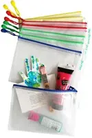 Versterkte transparante opbergtassen van A5-formaat met ritssluiting.
