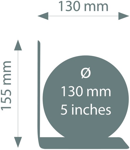 De wereldbol heeft een diameter van 13 cm en een verfijnd ontwerp met groene landoppervlakken en blauwe zeeën.