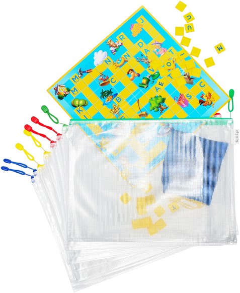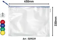 Versterkte transparante opbergtassen van A3-formaat met ritssluiting.